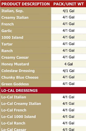 Salads will come to life when adding our dressings to the menu Using the freshest ingredients, creates flavors second to none. That will have your customers returning for more. Our complete line of salad dressings include Blue Cheese to lo-cal Golden Italian and everything in between. So pour on the dressings and spice up those salads with Marina salad dressings.